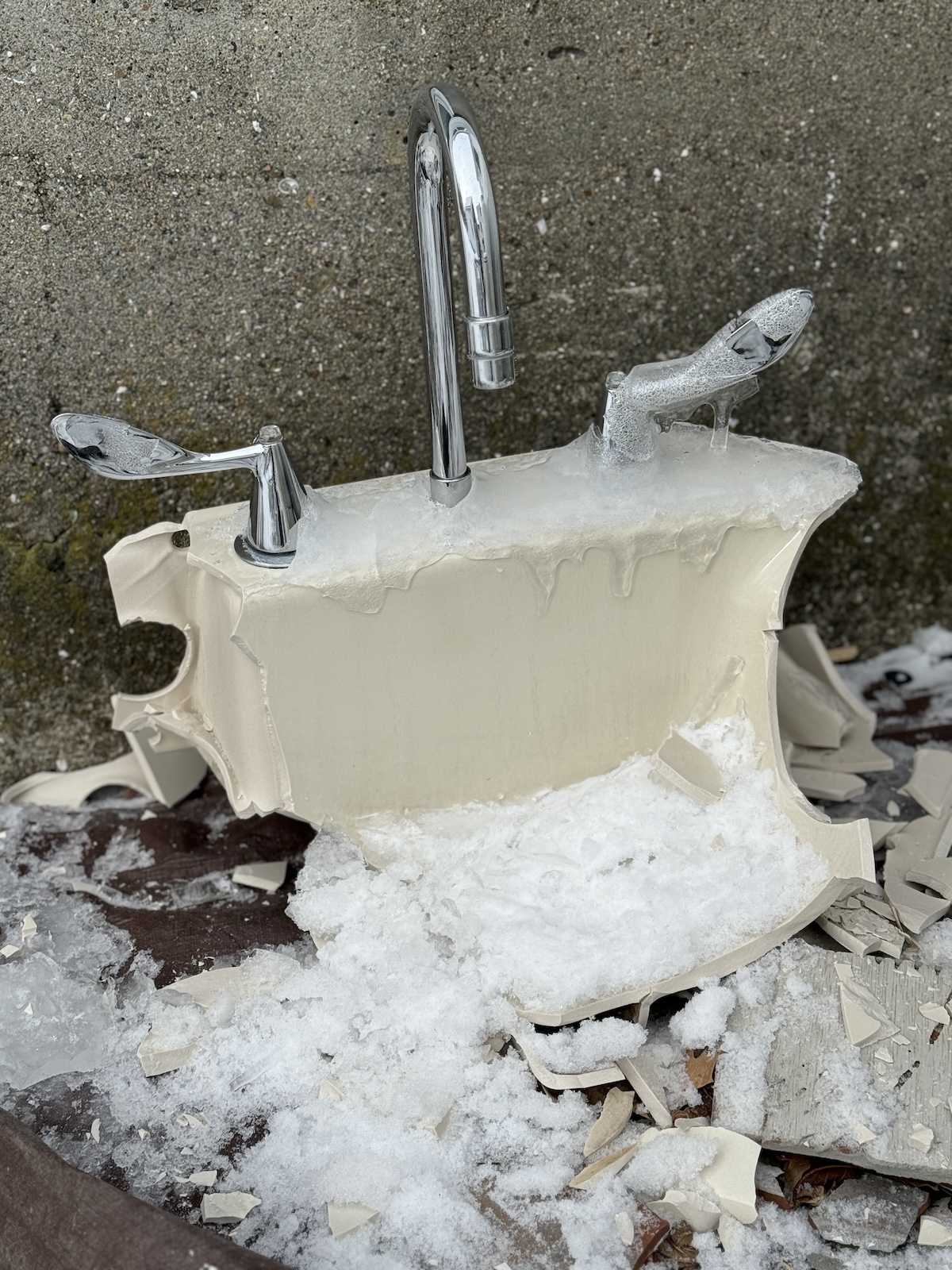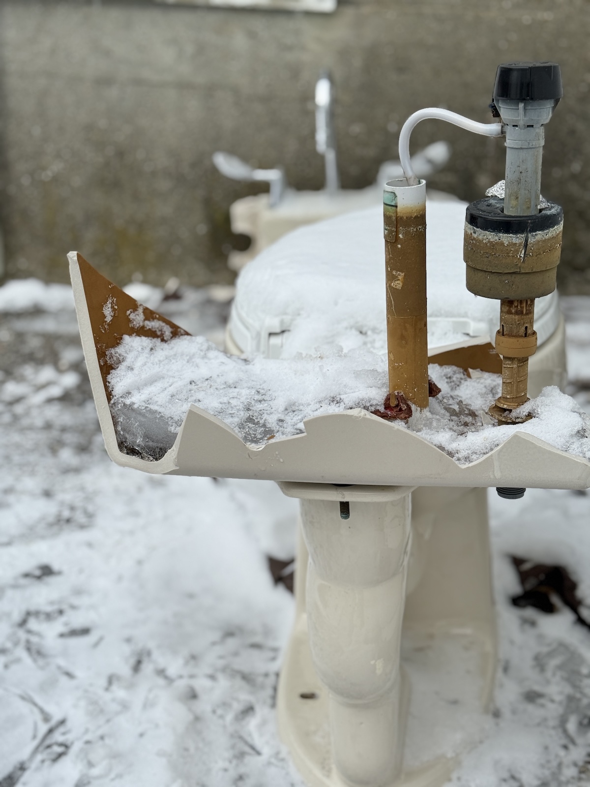 The HH left to go run errands one day and I ran outside and took a hammer to the toilet and sink and bit by bit this winter I’ve been loading it into our trash cans one bag at a time.